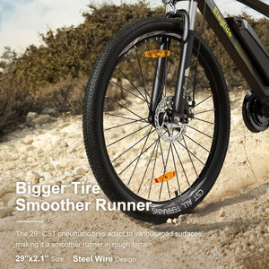 Conquer any terrain with hydraulic suspension and 21-speed Shimano gears. Reach speeds of 25km/h with 5 levels of pedal assist for thrilling rides up to 100km. Experience comfort on rough roads with CST pneumatic tires and front suspension lockout. Power through with a 250W brushless motor, offering 400W max power and 45NM torque. Navigate effortlessly with the 1.75" LCD display and revel in the versatility of multiple speeds. Get ready for unforgettable adventures with the Eleglide M1 Plus.