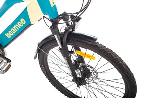 The Cosmo X features Suntour NEX HLO front suspension, ensuring a comfortable ride even on rough terrain.