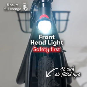 With a robust 350W motor, it reaches speeds of up to 15.5 mph, making it perfect for quick trips or leisurely rides. The 12-inch wheels provide superior stability and a smooth, comfortable journey on various terrains. Powered by a 36V 7.8Ah battery, the Liberty offers an impressive range of up to 30 km on a single charge, and its fast recharge time of just 5 hours means less waiting and more exploring. Plus, with a convenient built-in basket, you can easily carry your essentials, making it ideal for longer rides or errands. Discover the perfect blend of style, practicality, and performance with the Zinc Liberty Electric Scooter!